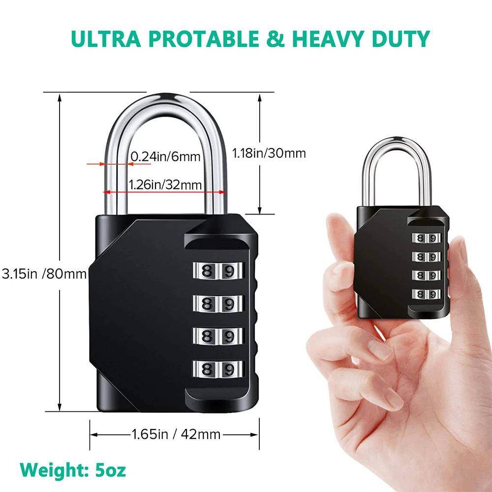Combination Lock Resettable 4 Digit Padlock with Combination Waterproof and Heavy Duty Combination Padlock Outdoor for School